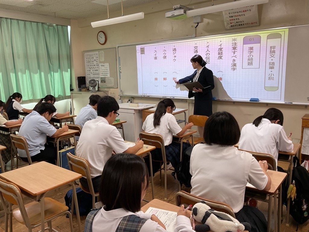 本校普通科には「特進コース」と「キャリアコース」があり、それぞれ特色ある内容で授業を体験していただきました。