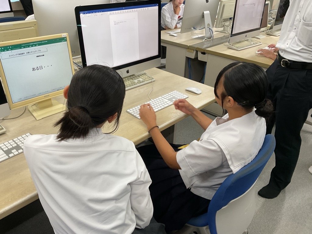 タイピング体験では、グループを組みリレー形式で1つの物語を作っていきました。
