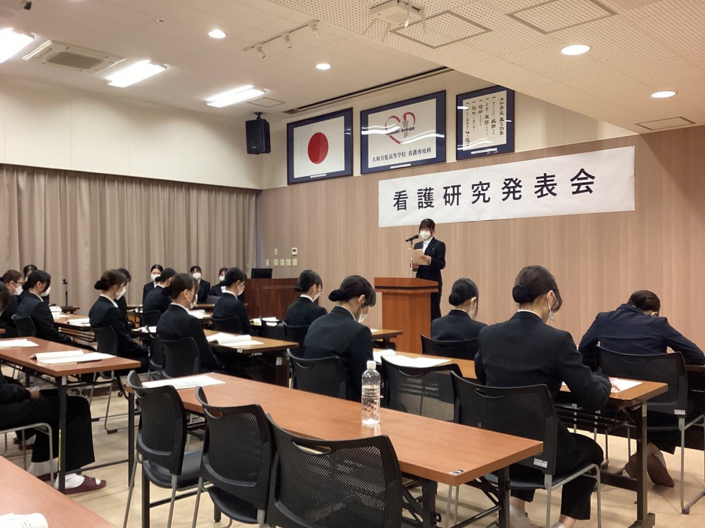 5年間の集大成として、これまで学んできた学習や臨地実習などの経験を通して考えた「私の看護観」について文章にまとめ、クラスメイトの前で発表しました。