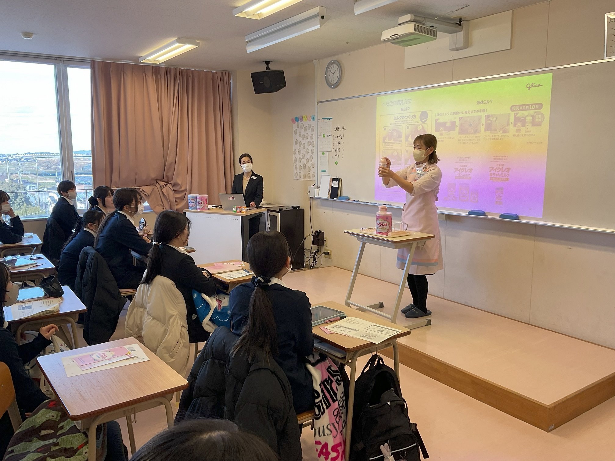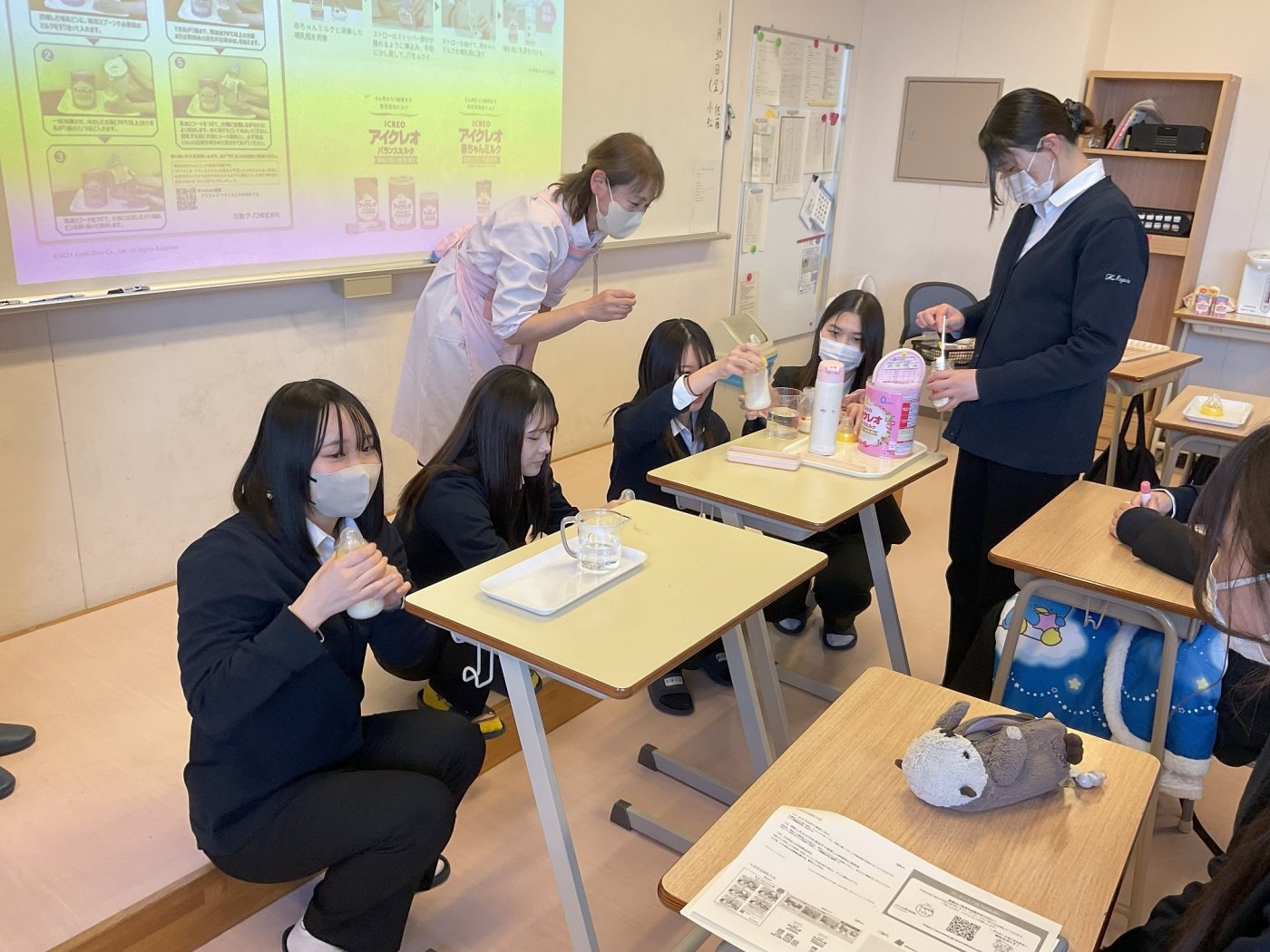 2026年02月17日 専攻科1年生 「女性と赤ちゃんの栄養」講義が行われました 看護科 ニュース 1月30日(金)、江崎グリコ株式会社様より奥本先生と池田先生にお越しいただき専攻科1年生を対象に「女性と赤ちゃんの栄養」について講義を行っていただきました。 講義では学生達のような若年女性の健康課題についてのほか、赤ちゃんを妊娠しているお母さんや乳児の栄養について詳しくお話していただきました。 先生からの説明を受け、学生達自身で調乳を行い試飲しました。 赤ちゃんのミルクを口にした生徒は、成長してから味わうその味にビックリしていました。 奥本先生、池田先生、貴重な体験をありがとうございました!