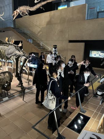 大きな恐竜の骨格標本に驚いたり、興味深い展示に足を止めたりと、生徒達は様々な学びを楽しんでいました。
